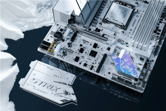 主板是整套主机的基石,十分重要。这里推荐的是吹雪家族新成员——华硕B850小吹雪主板。其以突破性设计重塑电竞美学,加入雪武战姬主题元素,银白装甲搭配白色内存插槽和浅色PCB,再配合上支持神光同步的ROG LOGO,构建次元美学新标杆!该主板售价1599元,晒单返50元E卡。华硕商城抢购链接:点击前往;京东抢购链接:点击前往