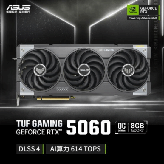 显卡推荐华硕TUF GeForce RTX 5060 O8G GAMING,其采用NVIDIA Blackwell架构、第五代Tensor Cores和RT Cores,还配备强大的AI功能,可提供全新体验和更高级别的图形保线技术,在全新Transformer模型加持下,不但能够提供更好的画质和效率,还能通过多帧生成技术巨幅提升游戏帧率。双滚珠轴流风扇配合MAXCONTACT镜面直触技术,可大幅提升显卡的散热效率,承受严苛的环境并提供强悍的性能,让您有备而来,制霸全场。